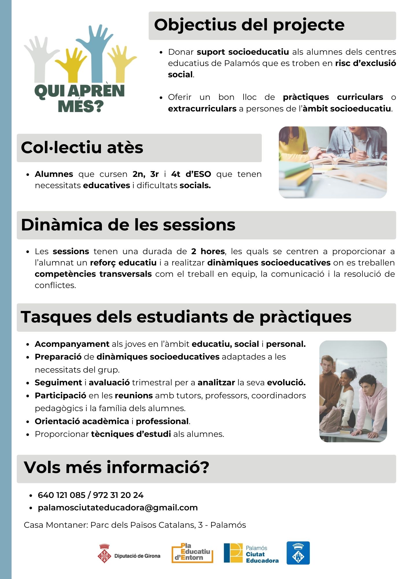 - Coordinant el Pla Educatiu d’Entorn de Palamós.